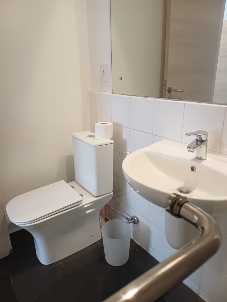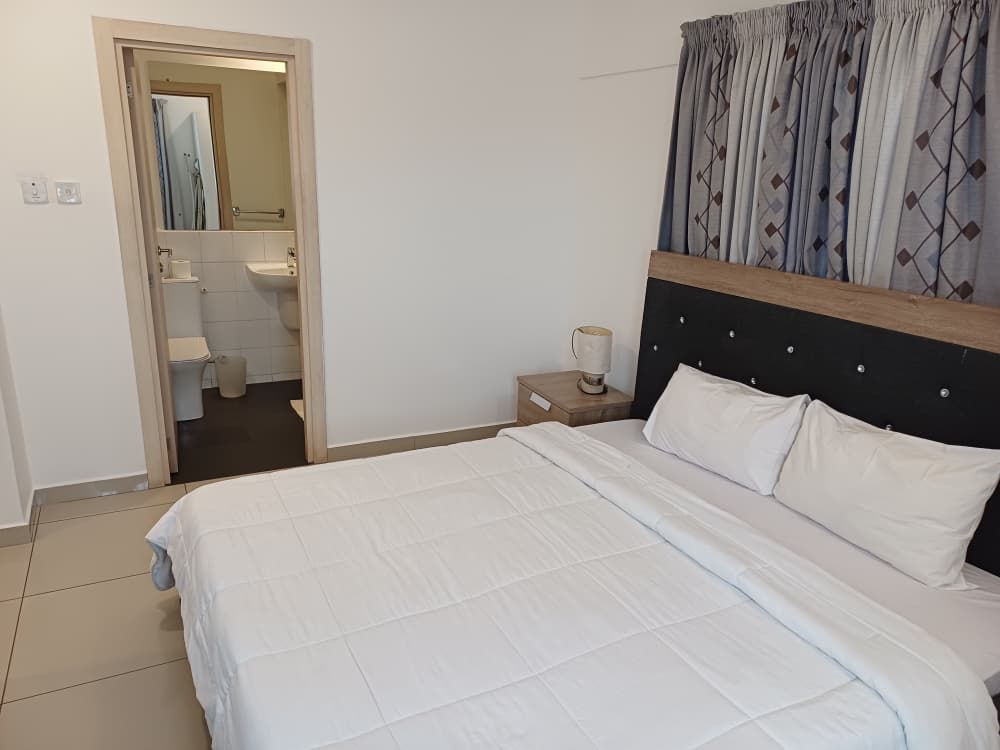 • Tranquil Bedroom Retreat: The comfortable bedroom features a serene ambiance and provides access to a modern bathroom with a walk-in shower, separate toilet, and complimentary toiletries for your convenience.