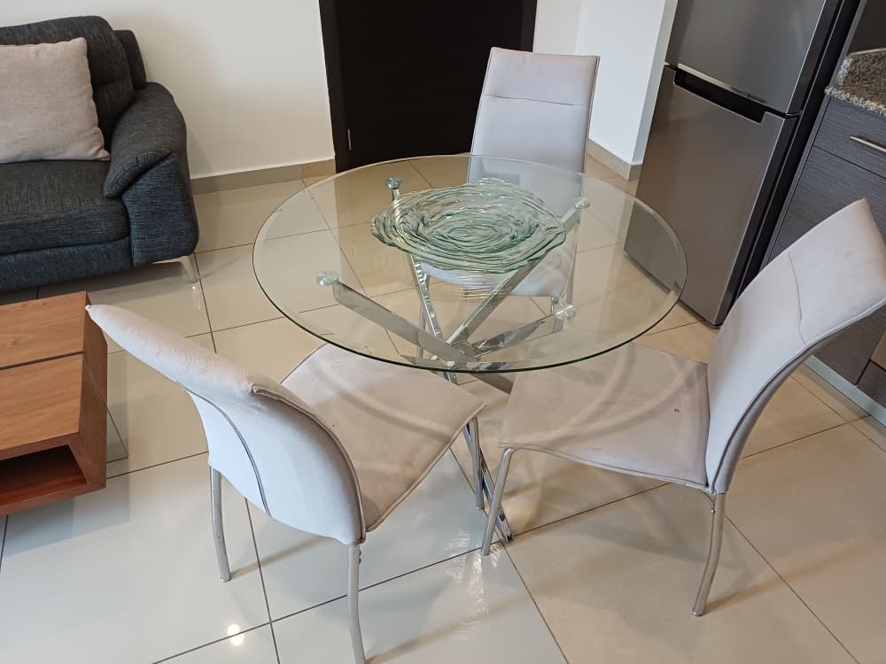 • Fully-Equipped Kitchen: Culinary enthusiasts will appreciate the modern kitchen, complete with essential appliances including a refrigerator, electric stove, microwave, toaster, blender, electric kettle, and a washing machine.